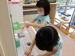 かばんのボタンをひとりでかけたり,ハサミを使って上手に切ったり,年少組は自分でできることがどんどん増えています。