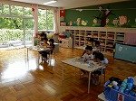 年少組は,広いお部屋をランチルームにして「しずかにお食事」に取組みました。担任の先生が,「ここは特別なお部屋だから,おしゃべりをしないでおいしい給食をいただきましょうね」と年少の子どもたちに合った言葉で語りかけます。子どもたちは先生のお話を受けて,真剣に取り組んでいます。先生が,「これは大切なことなんだよ」と話してくれることを,子どもたちは本当に真剣に守ります。その姿は,子どもたちと先生方との信頼関係の上でできることなのです。