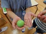ひやひやすべすべの感覚を楽しむスライム遊び。「ほら,こんなにぴかぴかになったよ」きれいなまんまるスライムができました。