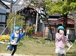 園庭では,年中組と年長組が,春の日ざしを浴びて元気いっぱい走り回っていました。その様子を菜の花が嬉しそうに見つめています。春いっぱいの沼垂幼稚園です。