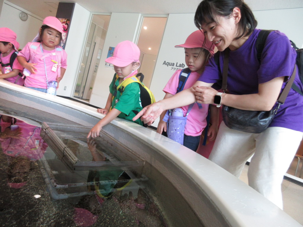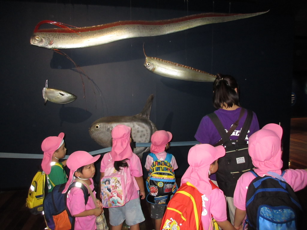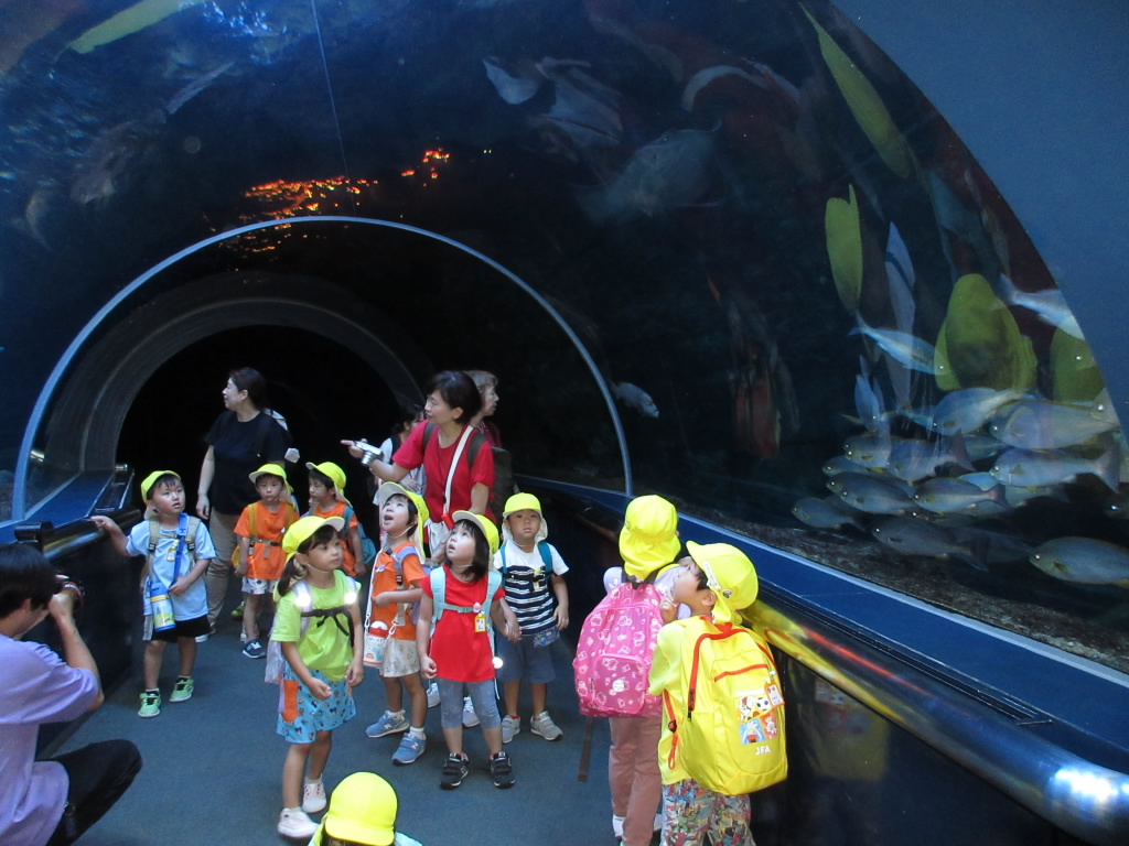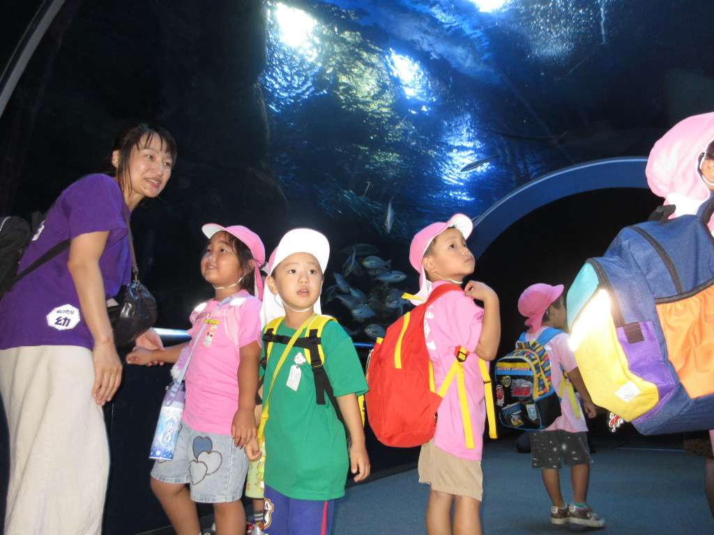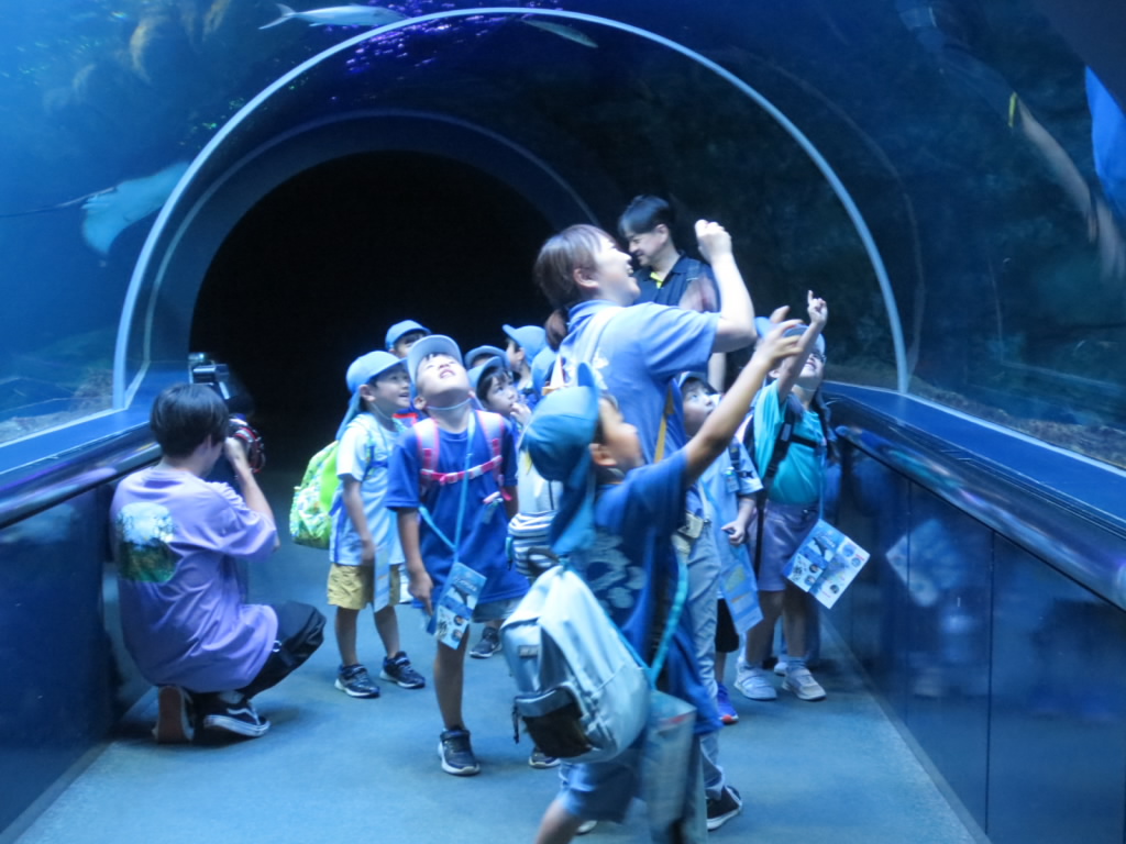 子どもたちがゆったりとした時間の中で、発達段階に合わせて満喫できるよう、学年ごとに館内をまわりました。一つ一つの魚や生き物の動きや様子に感動し、一人一人が思い思いに気付いたことを表現していました。友達や先生と一緒に楽しむ中で、たくさんの発見がありました。子どもたちのキラキラしたまなざしが、とても印象的でした。