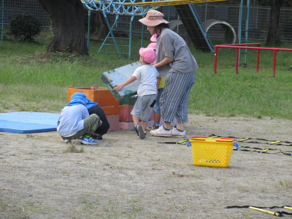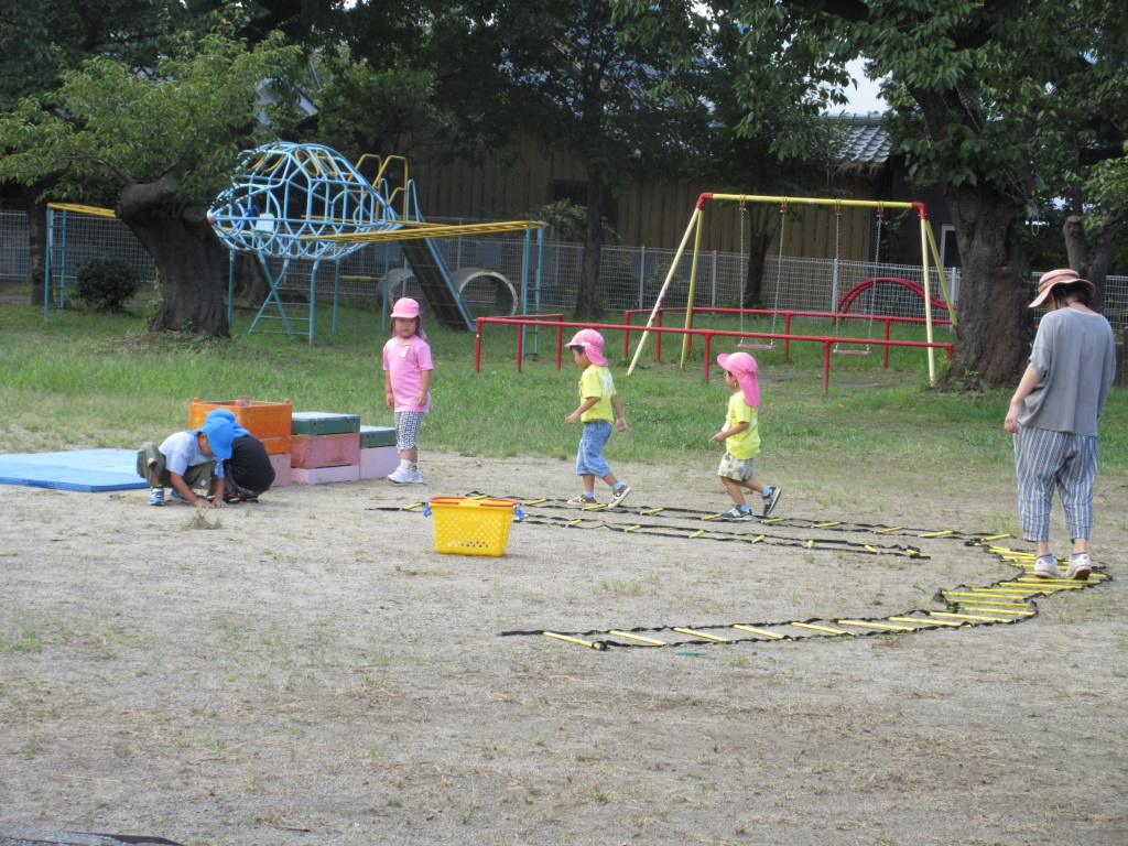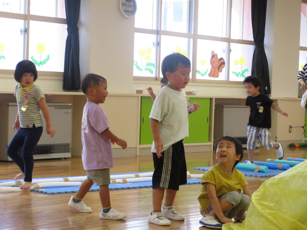 運動会に向かう生活の中で、幼稚園では遊びの中でいろいろな動きを楽しんでいます。初めから決められた動きではなく、子どもたちが考えた面白いアイディアがたくさんです。今日は、何して遊ぼうかな・・