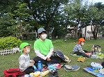 年少組は近くの公園へ歩いて園外保育へ出かけました。