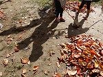 子どもたちの落ち葉集めも板についてきました。くまでも上手に使っています。「たくさん集めるんだ」とお友達と張り切っています。