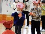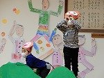 年長組は,この生活発表会へ向けて,協同的な活動を大切にと取り組んできました。「協同性」は、友だちのとの関わり合いのなかで、共通の目的を実現するために協力したり、工夫したりする経験を通して育まれていきます。生活発表会に向けての取組は,まさにぴったりの体験です。子どもたちは,劇遊びの中で,お互いの良さを見聞きしたり,認め合ったりしながら,どうしたらもっとよいものになるかな?と考えながら当日までを過ごしました。