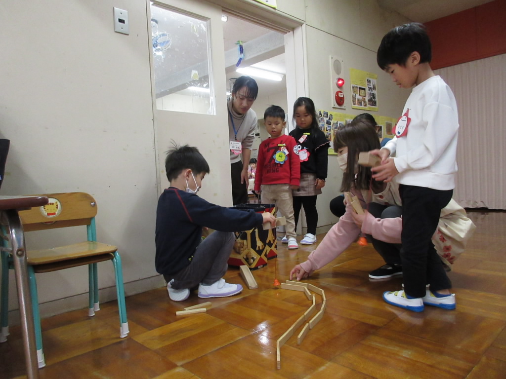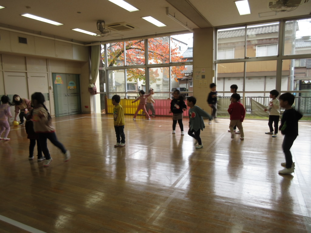 年中組の子どもたちは、交流をしている長嶺保育園へ遊びに行ってきました。先日一緒に遊んだ経験を思い出し、数日前から楽しみにしていました。初めての環境の中で、自分の気持ちを伝えたり、自分から声を掛けたり、人と関わる上で大切なことを、遊びの中でたくさん学んでいます。