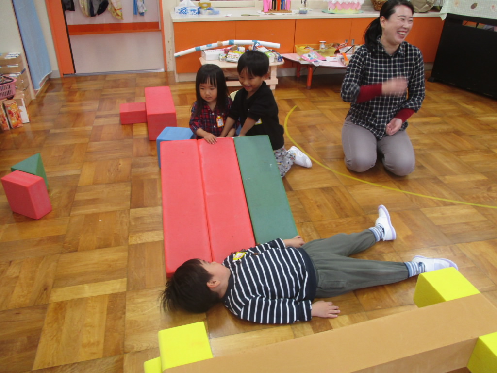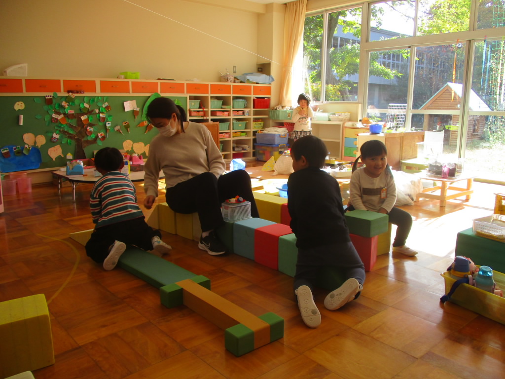 子どもたちは遊びの名人です。自分で選んだ素材を、くっつけたり、つなげたり、ころがしたり自分なりに試して遊びます。偶然できた形を面白がったり、見立てて遊んだり、遊び方は様々です。決められた遊具や与えられたものではなく、素材を自分で選んで遊ぶことが、楽しさにつながっていきます。