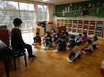 年少組は,園長先生が「おもち,食べましたか?」の問いに元気よく「はーーい」・・・やっぱり幼稚園には元気のよい子どもたちの声がぴったりです。
