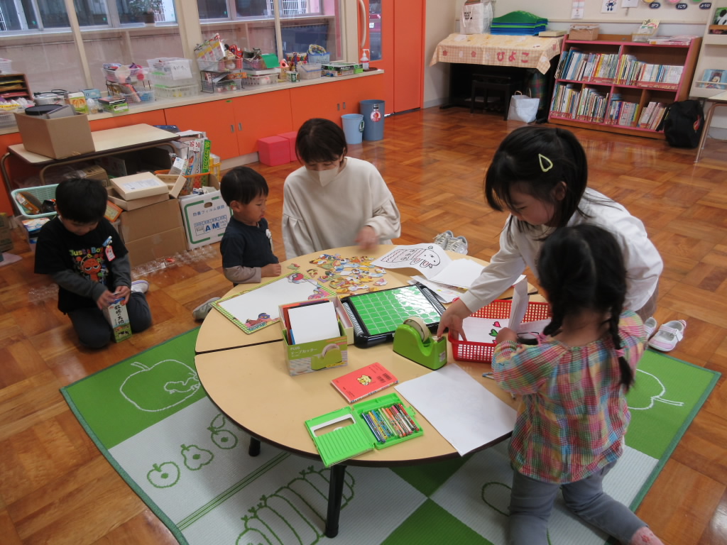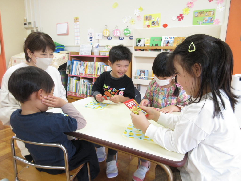 「今日は、ちゅうりっぷ組だ!やったー。」と、預かり保育の日を楽しみにしている様子が見られます。おやつを食べ終えると、「何して遊ぼうかな・・・」と自分のやりたいこと見つけて遊び始めます。