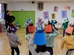 子どもたちは作った鬼のお面をかぶって元気にダンス。