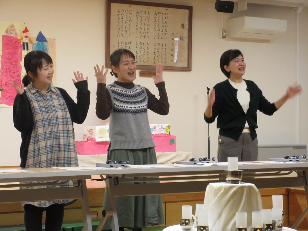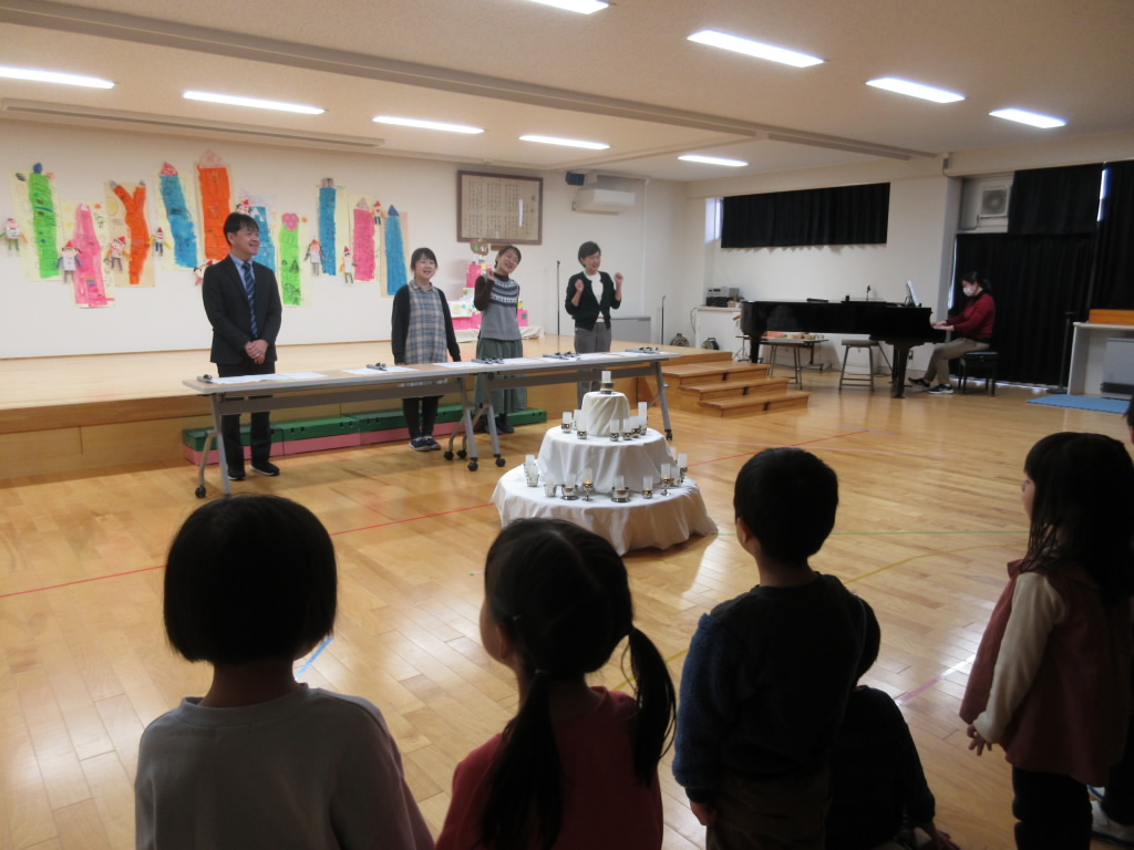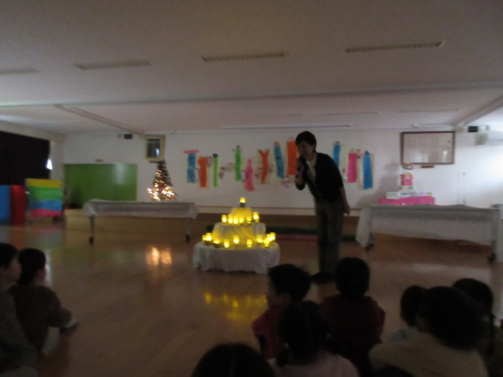 今日は、クリスマスお楽しみ会でした。みんなでジングルベルを歌って踊ったり、職員のトーンチャイムの音色に耳を傾けたりしながら楽しく過ごしていると・・・どこからともなく鈴の音が・・・
