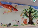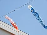 沼垂幼稚園の中のこいのぼりも元気です。桜の木もピンクの花からから緑の葉っぱになりました。