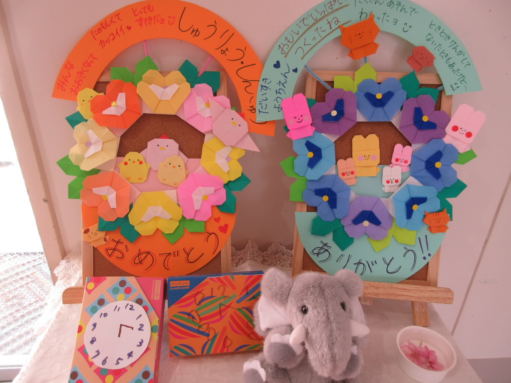一人一人が、安心して自分らしさを表しながら、着実に成長した一年でした。子どもたちは、教師と一緒に一年を振り返り、自分の成長の喜びや、友達、先生へのありがとうの気持ちを言葉で表していました。一年間、保護者の皆様の温かなご支援をいただきまして、本当にありがとうございました。進級・修了おめどうございます。