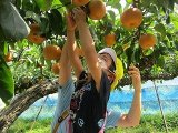 中村観光果樹園では,説明を聞いた後,早速畑に入ってなしを収穫しました。