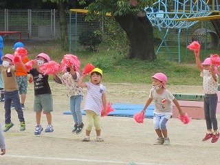運動会が近付くにつれ,自分からお兄さんお姉さんに声を掛け,関わろうと行動する姿が見られるようになっています。