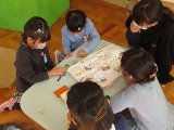 おうちの方から作ってもらった入れ物を使い,どうやら色別に分けているようです。