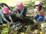 平成11年,保護者のみなさんが中心となり,保護者・地域・職員が力を合わせてワンダーガーデンを作り上げました。その中に作った池を専門家の支援を受けながら,改良し,今の姿の「きらきら池」が完成しました。今も,「きらきら池」は子どもたちにとって大切な遊びの場であり,かけがえのない学びの場となっています。