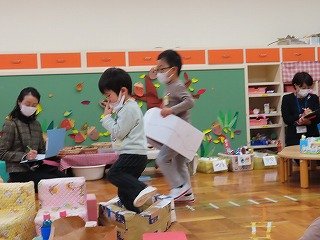 「救急車に見立てた段ボールの大きさや柔らかさは,年少組の子どもたちが遊ぶのに適していた」