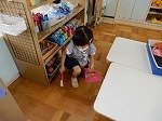 遊んだ後は,かたづけです。年少組は,ままごとで使ったお皿やお茶わんなどを,種類ごとに分けてかごに返しています。