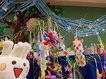 地元企業様のご厚意で笹をいただき,こどもたちの飾りや短冊をたくさんつけることができました。