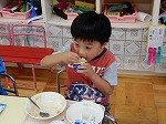 お楽しみデザートはアイスクリーム。冷たくておいしい。