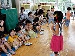 年少組がきらきらバトンを振ってパプリカの応援。コンサートみたい。あら?えのきマンも,楽しい声をきいて,なつまつりにやってきました。