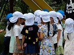 「ちくわ」ってどんな味かな。年少組もちくわにチャレンジ。「おいしいな。」