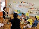 クラスの子どもたちに,楽しく自己紹介をしてくれました。「先生がすきなたべもの,わたしとおなじだわ。」子どもたちは,教員実習生先生のお話をよくきいています。