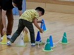 年少組は,競技での動きを遊びの中に取り入れながら,元気よくからだを動かしています。