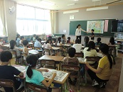 朝の学びタイムには,読書や短時間の学習,学級の活動など,様々な活動を行っています。 プレイルームでは,2年生が,竹内栄養教諭から,食育指導を受けました。夏休み前のこの時期に合わせて,「早寝,早起 …