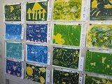校舎を回っていると、多くの学年で版画の制作や印刷をしています。刷り上げて紙を版木からめくる瞬間の子ども達のわくわく感、表情がとてもいいです。空想やお話の絵、幾何学的な素敵な模様、浮世絵風のもの、自画像など学年それぞれの題材で、素敵な作品が仕上がっています。