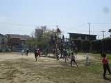 話は変わりますが、晴れの日は大勢の子ども達が外に出て遊んでいます。今日は風が強い1日でしたが、鬼ごっごやボール運動、遊具などで遊んでいました。1年生は中庭で思い思いに遊んだり、6年生と一緒に遊んだりしていました。
