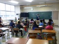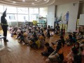 3,4限に,1年生の交通安全教室を実施しました。大通駐在所の内山様,4名の交通指導員の皆様,市交通対策協議会からもお出でいただきました。内山駐在所長様からは,① 右側を歩くこと。 ② 歩道は,歩道を歩く。 ③
