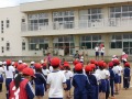 朝の活動は,応援練習でした。白組がグラウンドで,赤組は体育館で行いました。初めての全体練習だったので,応援団が吹く笛の合図を覚えることから始めました。応援団の合図で,それぞれのチームの子どもたちはきびきびとした応援の動きができるようになってきました。明日は,場所を交代して練習するようです。