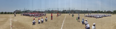 合戦,全校の子どもたちが力を合わせて競技する大空種目「どきどきジャンプ」の練習を行いました。