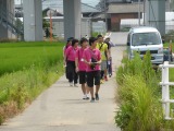 この暑さの中,教職員は,9月23日(金)に予定しています「全校自然教室」の下見に出掛けました。途中の危険箇所を確認したり,コースの状況を把握したりしながら,学校から西を目指して歩いて行きました。中塩俵で中ノ口川(工事中の塩俵橋)を渡り,途中「木場城公園」で打ち合わせをして,目的地「みどりと森の運動公園」に到着しました。公園内をぐるりと回って活動場所を確認後,帰路は中ノ口川の土手に出て再び橋を渡り,学校を目指して往復約7Kmを歩いてきました。