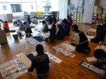 2学期の前半の区切りまであと3日,各学年では硬筆や毛筆の練習が行われています。今日は,プレイルームで,2限は5の1が,3限は5の3,4限には5の2が書き初めの課題文字を練習していました。