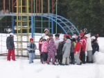 グラウンドでは,4年生が大きな雪だるまを作ろうと頑張っていました。2の3も学級で雪遊びをしていたようです。