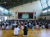 子どもたちの手によるいじめ見逃しゼロ集会が,体育館で行われました。