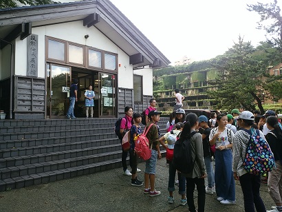相川地区の北沢浮遊選鉱場跡に隣接する相川技能伝承館にやってきました。写真の後ろに見える選鉱場は,江戸時代に金を採取し終わった岩石から,再度金を採りだす技術を導入し,大量の金を得ることに成功したそうです。私たちが泊まったホテルから見えた海岸にあった白い岩石がその岩石なのだそうです。いろいろなところに歴史を感じることができました。