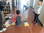 3年1組では,ゴム動力で走る自動車を使って実験をしていました。のばしたゴムの長さと進む距離との関係を,順序よく記録しながら整理していました。班の友達と協力して活動していて,立派でした。