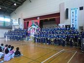 全校児童,教職員,主税会の皆さん,保護者の皆さん,教育実習生,みんなの心が1つとなった出陣式でした。