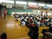 8:10から体育館で出発式を行いました。元気のよい挨拶を行った後,「友達との絆を深め,自然とふれ合い,思い出に残る楽しい林間学校にする」ことをみんなで確かめ合いました。