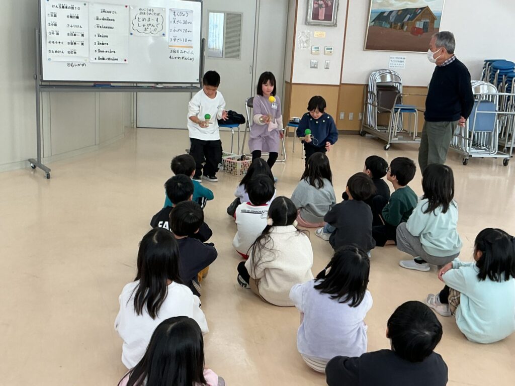 けん玉名人に来ていただき、けん玉の持ち方やけん玉のいろいろな技などについて教えていただきました。けん玉の技に挑戦してできるようになると、「やったー!」や「できた!」などと大きな声をあげながら嬉しそ …