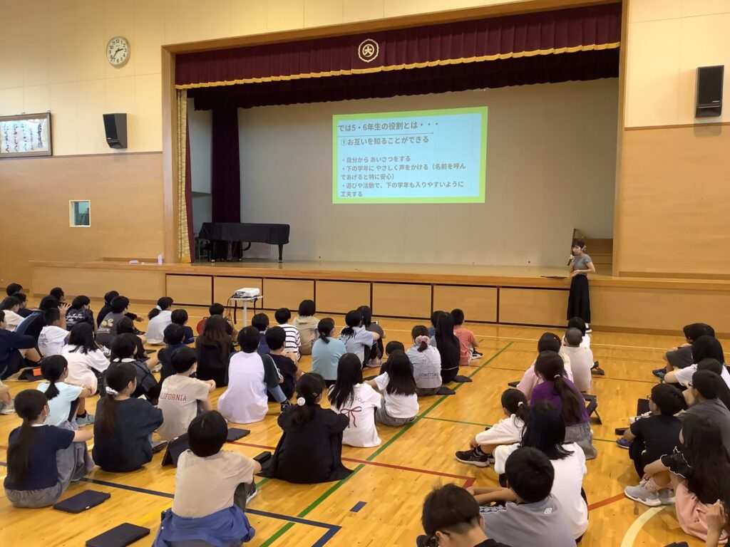 前半は、ふれあいウォークのねらいを確認したり、5・6年生としての役割を考えようとしたりしている姿が見られました。