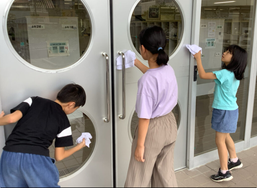 クリーンプロジェクトは玄関の窓拭き活動や廊下や水飲み場の清掃活動を行いました。