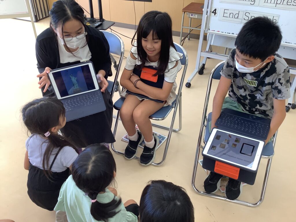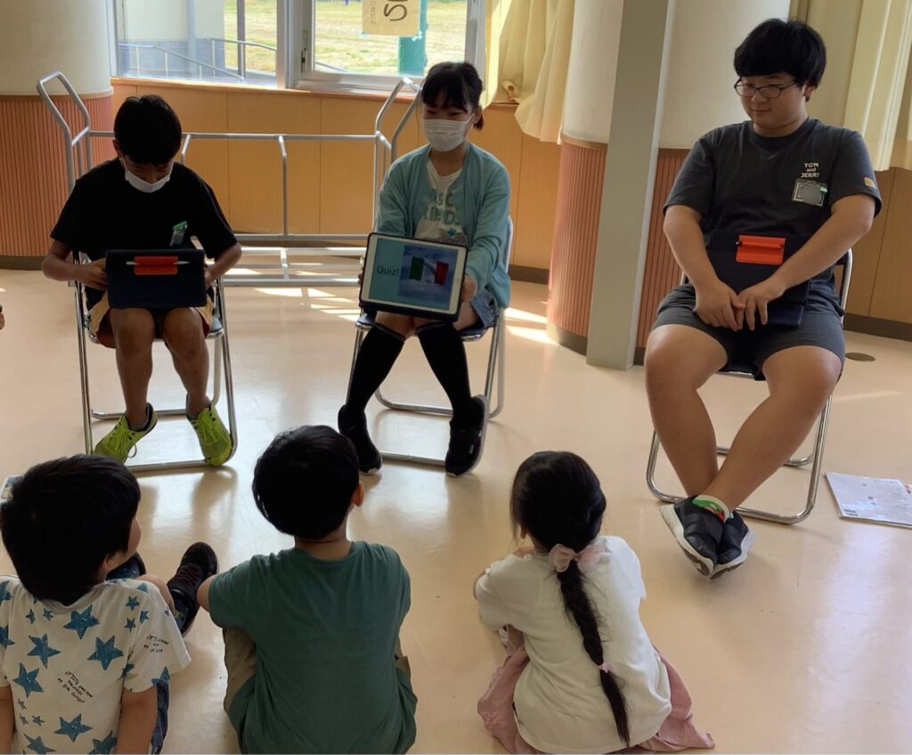 6年生が、自分の行ってみたい国について、クイズや読み聞かせで1年生に紹介しました。