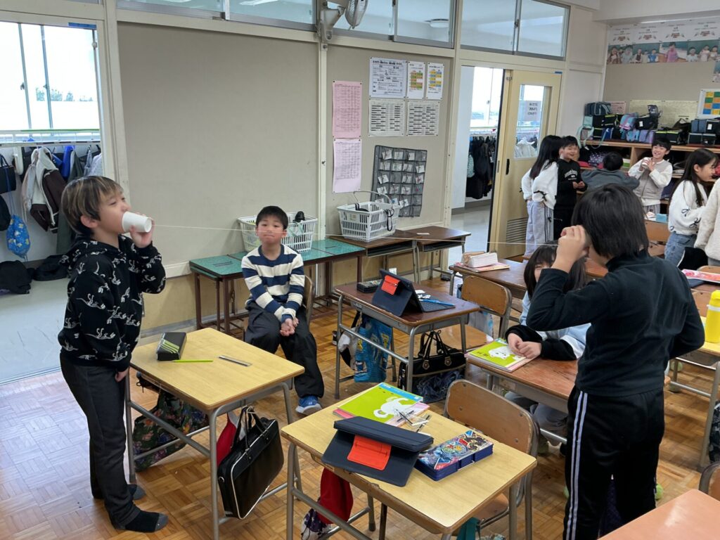理科の学習で糸電話について調べています。糸電話の糸を触ったり、友達と音の伝わり方について話したりしています。班で協力しながら、糸電話の秘密を解き明かしていました。(文責:青柳)