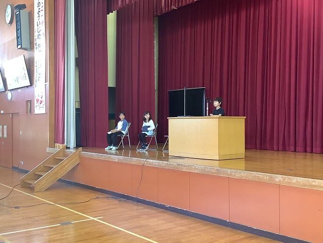 校歌を歌った後は、1・3・5年生の代表児童による前期の振り返り発表。どの子もしっかりと前期を振り返り、後期への目標を力強く語ることができました。