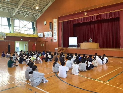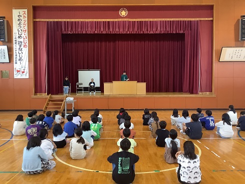 そして、「一人一人がかけがえのない命。自分と他の人の命を傷つけないようにしましょう。自分の体の使い方を考え、いじめの芽を見逃さないようにしましょう。」と話がありました。どの子も真剣に聞いていました。